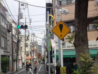 葛飾区立石 立石さくら通りと亀有新道の交差点近辺。どちらの道も横断しちゃう人が多いようである。