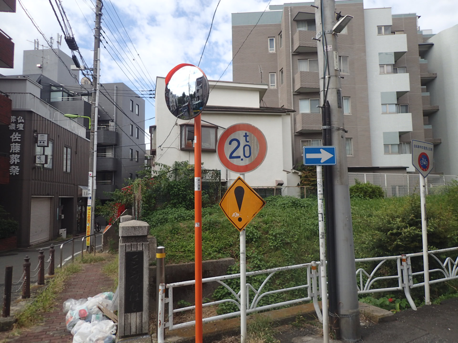 その他の危険標識 東京二十三区 江戸川区・世田谷区・大田区 江戸川区西小岩。ホテルがあるから注意なのか、見えにくい歩行者道路があるから注意なのか。 世田谷区笹塚。重量制限がシビアなのだろうか。 大田区田園調布。木が茂ってしまって道路からは標識が見えない。 中央の電信柱に設置されているはずなのだが。