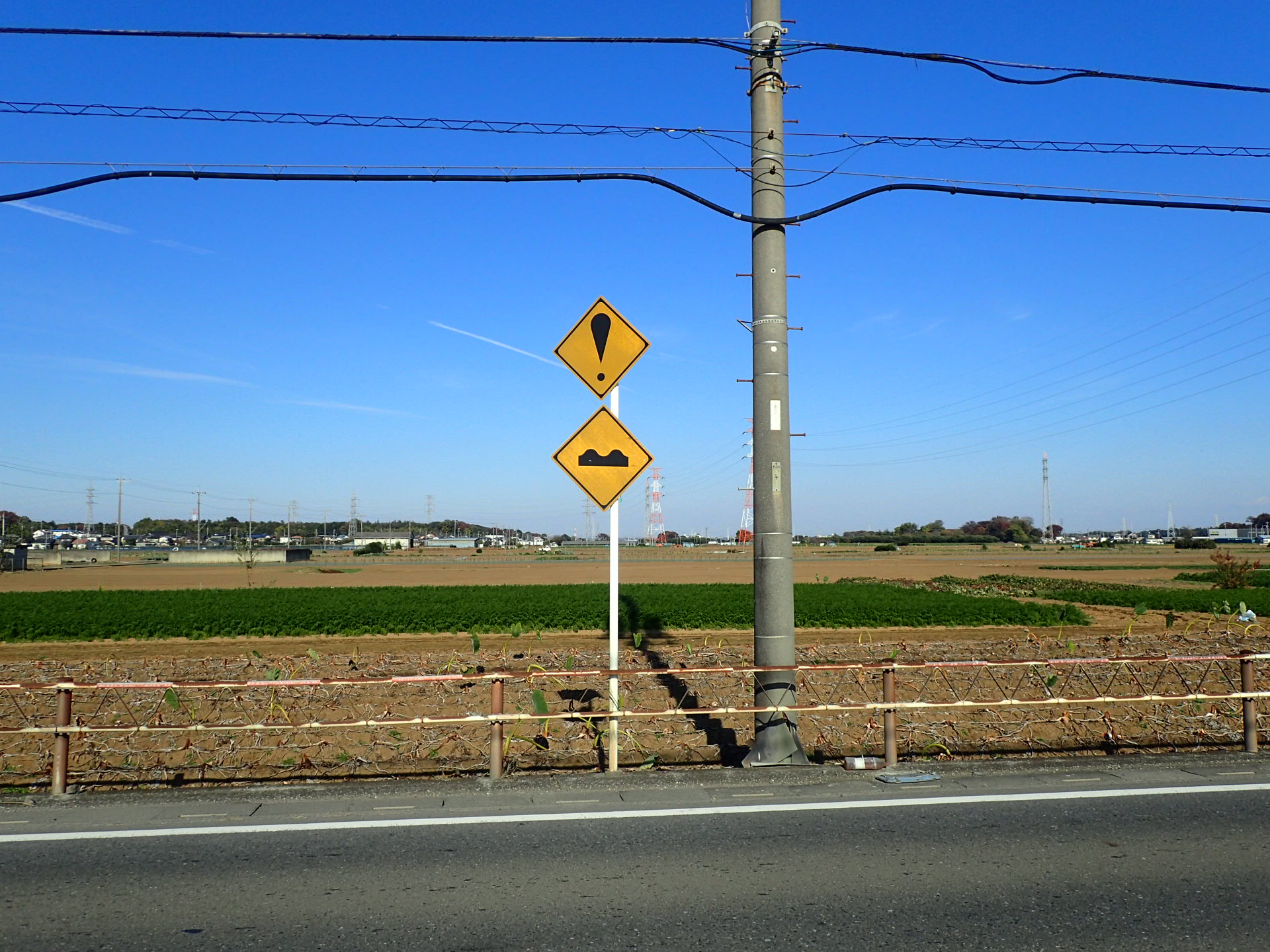 その他の危険標識 埼玉県狭山市 狭山八幡神社脇。つづら折りと十字路の標識だけでもいいような気がする。 狭山市掘兼の草刈街道沿い。段差舗装はあるがわざわざその他の危険標識を出す必要があるとは思えない。 近くにはこんな標識がある。