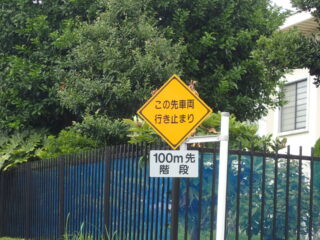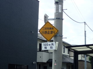 大田区の警戒標識 この先車両行き止まり 階段あり